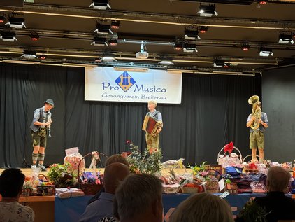 Beide Gruppen ließen es auf der Bühne so richtig krachen und das Publikum klatschte ordentlich mit! Mit dem "Zottelmarsch" und dem bekannten Wiener Marsch "Heut´ kommen d´ Engerln auf Urlaub" gaben auch wir unter Anderem unseren Beitrag dazu.