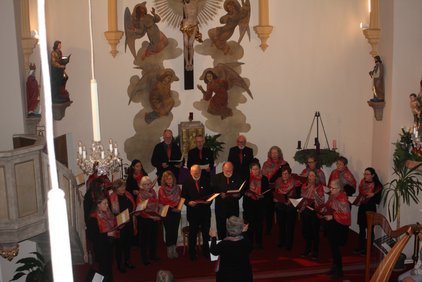 Chorleiterin Petra Ripa hat wieder einmal wunderschöne Lieder dazu ausgewählt. Stücke wie "Von guten Mächten" oder "Ins Wasser fällt ein Stein" untermalten die kleine Messe.